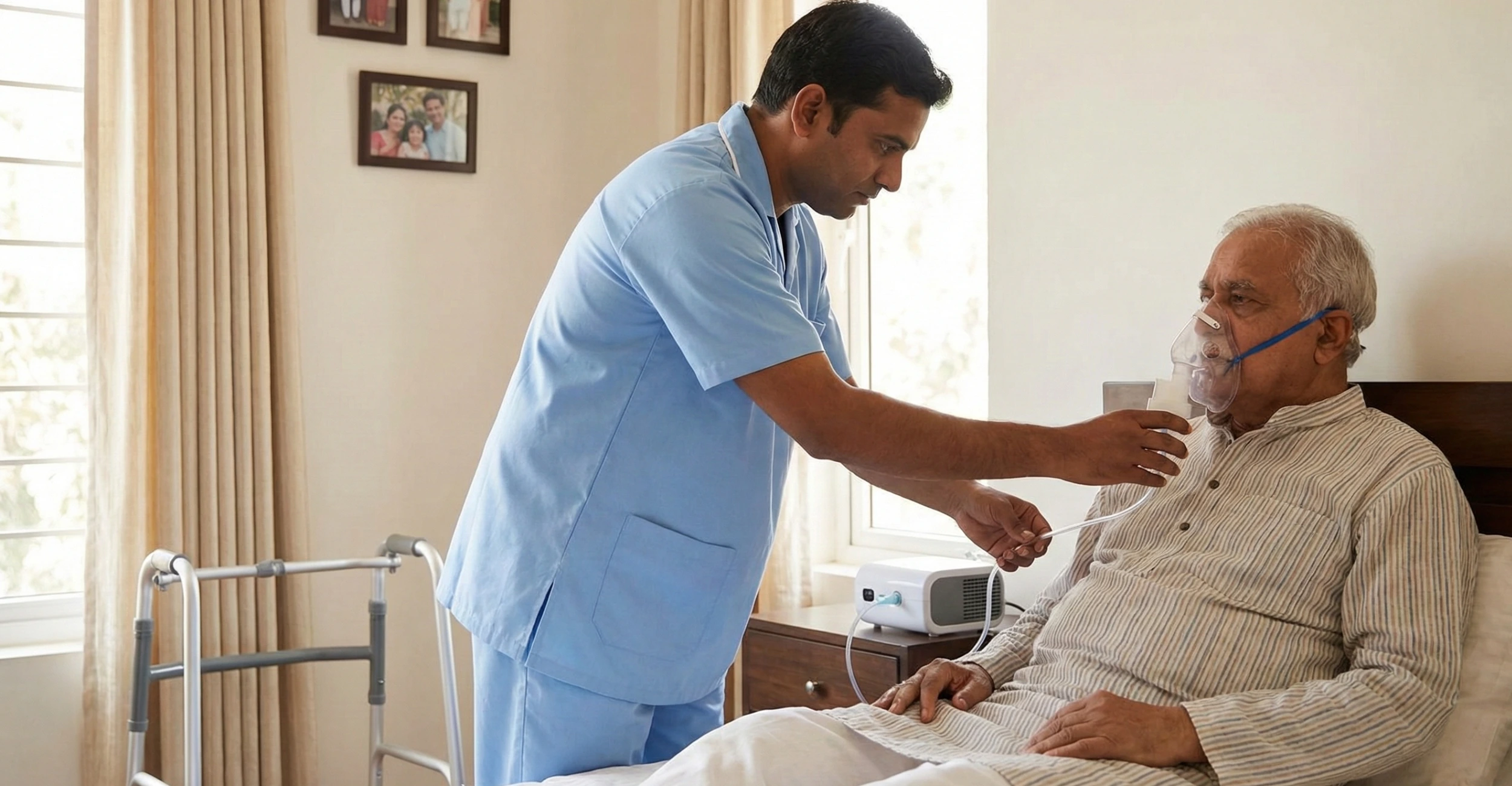Advanced ICU-level medical setup at home including ventilators, monitoring systems, ICU beds, and 24×7 critical care support.